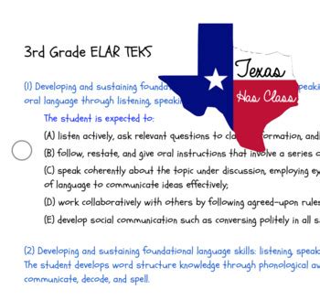 NEW TEKS 3RD GRADE CHECKLIST FOR ELAR by Coalesced Classroom  TpT